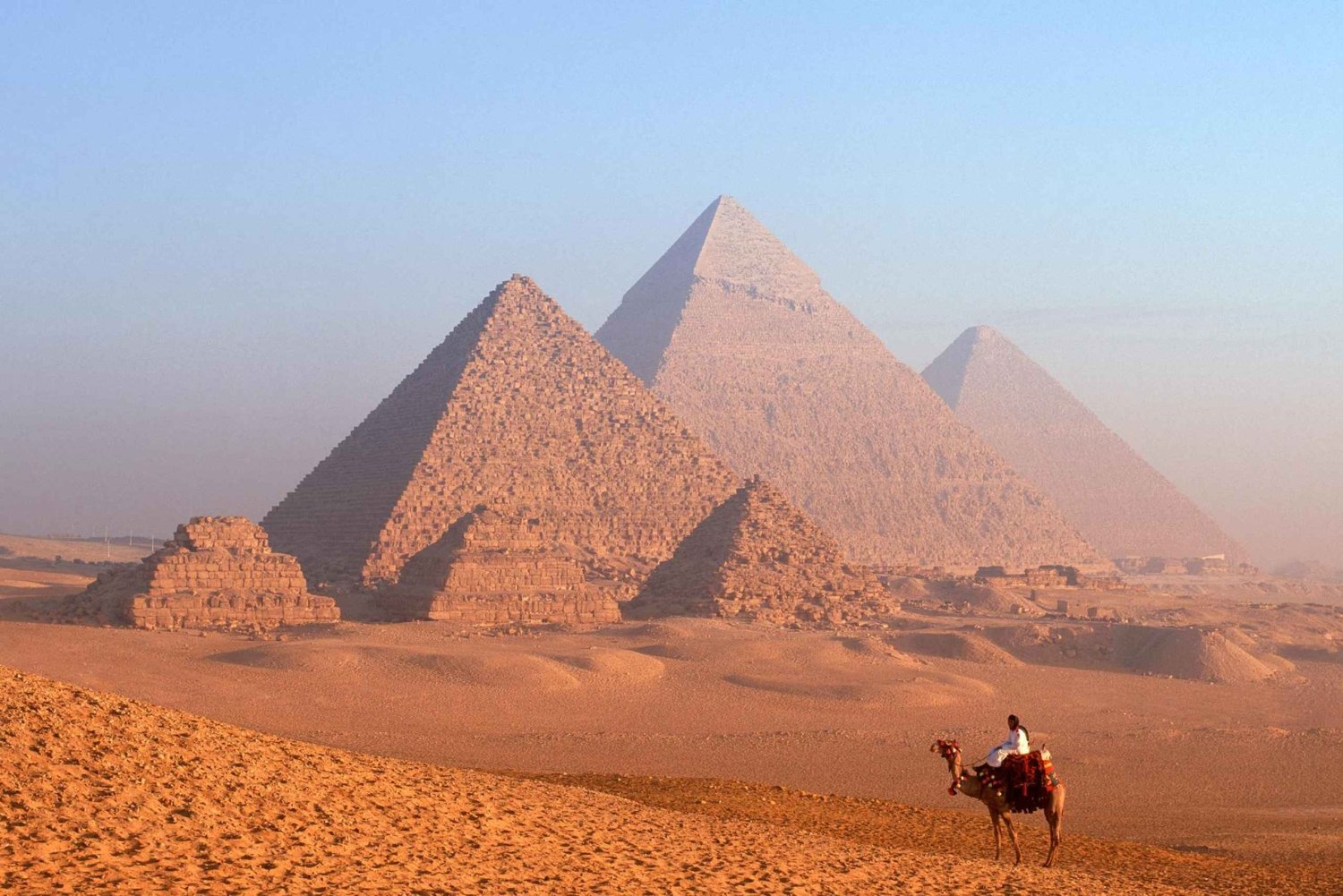 Day 1:Arrival Cairo Welcome to Cairo, Egypt (Around The Clock) Your tour manager will meet and assist you at Cairo International Airport (Arrival procedures). Day 2: Pyramids / Cairo Tour met by your personal guide who will accompany you to Giza Plateau to visit one of the seven wonders of the ancient world, the Great Pyramids of Cheops, Chefren and Mykerinus, famous Sphinx and Valley temple facing the great statue. Lunch will be served at the good quality local restaurant. Then transfer to enjoy the Egyptian Museum, Continue to Old Cairo to visit the Hanging Church and Ben Ezra Synagogue. Continue driving to Islamic Cairo, where you will be able to explore Khan El Khalili, Cairo’s old bazaar. In the evening transfer to Cairo International Airport for departure. Cairo Pyramids kindly note: the tickets included is to the area of the pyramids not inside one of the pyramids. If you wish to enter one of the pyramids, you can pay a ticket on spot.Includes