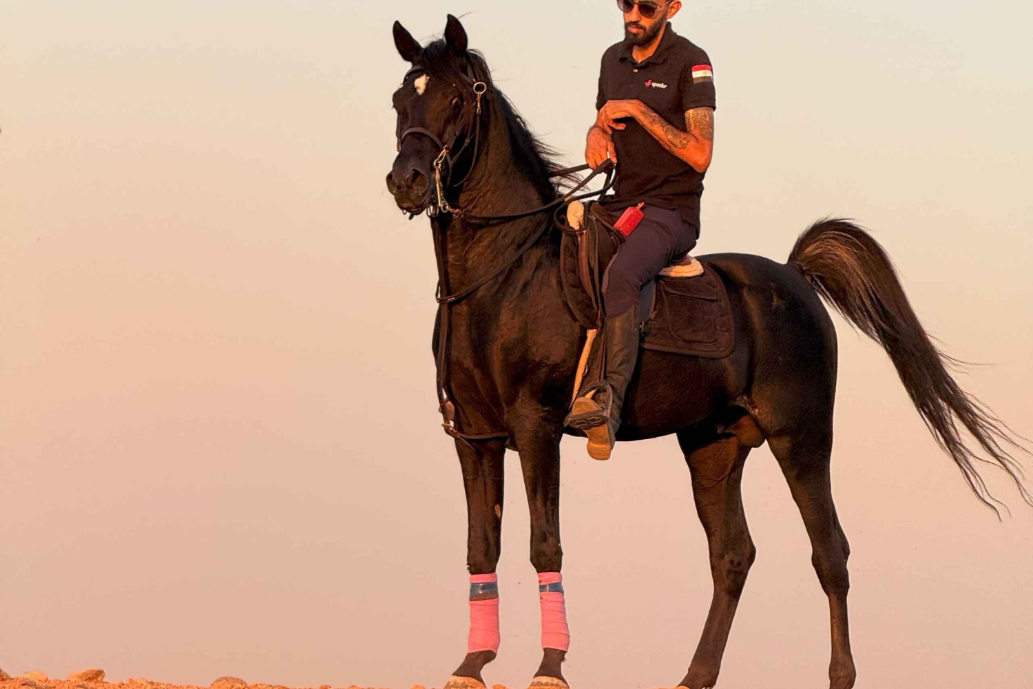 ギザの壮大なピラミッドを囲む黄金の砂漠を馬に乗って駆け巡る、一生に一度の冒険に出発しましょう。この2時間のガイド付き体験は、アドレナリン、文化、息をのむような景色が融合した、スリルを求める人、歴史愛好家、エジプトで本当に忘れられない瞬間を追い求める人にとって完璧な体験です。 ガイドと合流し、ヘルメットを含む必要な乗馬用装備を装着します。その後、よく訓練された馬に乗って砂漠の風景を駆け巡る冒険に出発します。 初めて馬に乗る方でも、経験豊富な乗馬愛好家でも、古代エジプトの魔法を足元と蹄の下で感じることができます。途中、ピラミッドを背景に壮大な写真を撮影するための休憩も取ります。 ガイドが提供するボトル入り飲料水と軽食で、リフレッシュしてください。Includes
