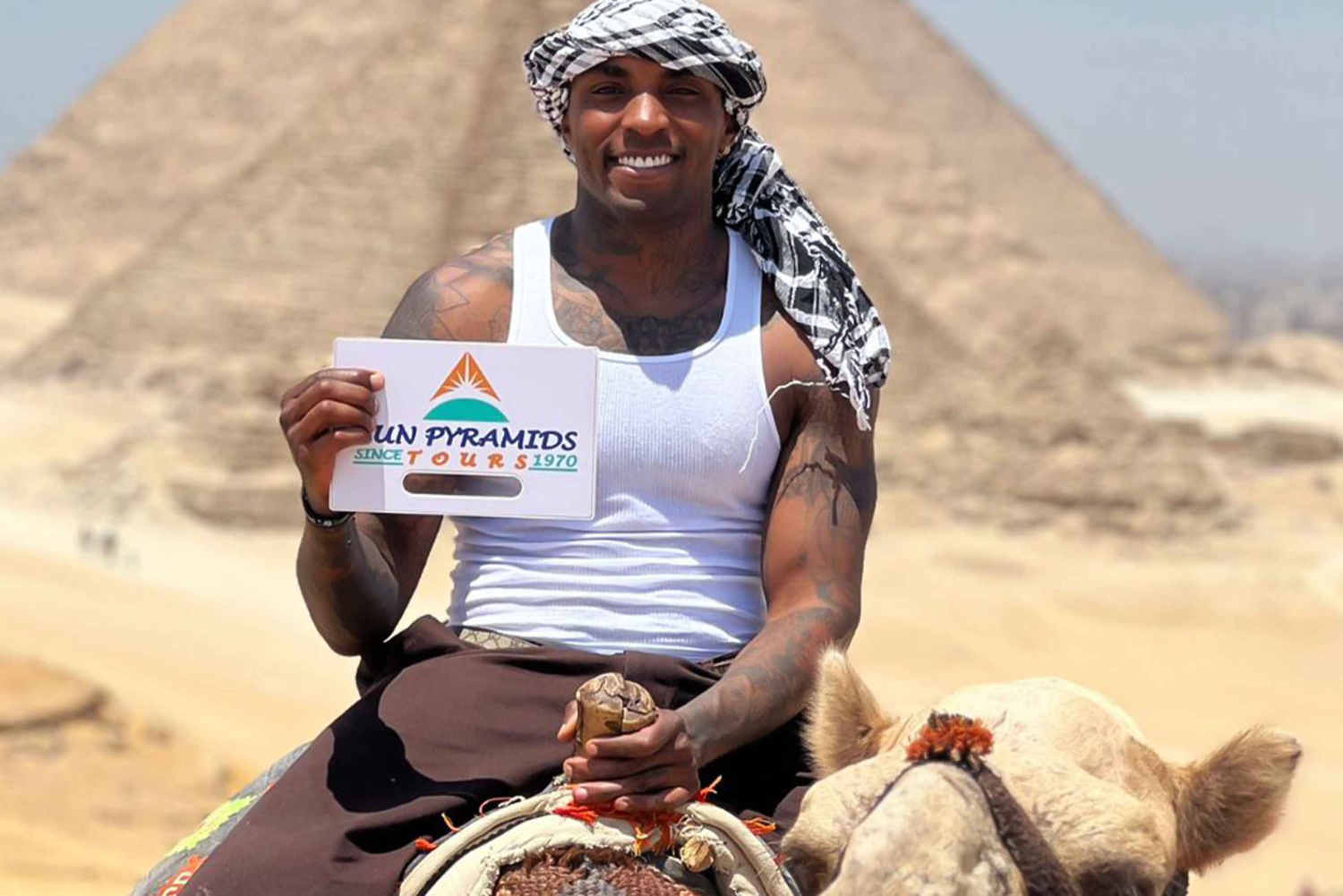 Nasz pilot wycieczki odbierze Cię wcześnie z hotelu, aby rozpocząć przygodę z jazdą na wielbłądzie, gdzie możesz cieszyć się delikatnymi promieniami porannego słońca i uchwycić oszałamiającą panoramę pustyni Giza i piramid. Następnie delektuj się egipskim śniadaniem składającym się z kremowej fasoli fava (foul) i chrupiącego falafela, z widokiem, który wybierzesz: z bliska na piramidę Khufu lub na Wielkie Muzeum Egipskie z piramidami na horyzoncie. Po pysznej kolacji nasz przewodnik przygotuje Cię na wycieczkę do kompleksu piramid w Gizie, jedynego zachowanego cudu starożytnego świata. Pierwszym przystankiem są piramidy Cheopsa, Chefrena i Mykerinosa, które natychmiast przeniosą Cię o ponad 5000 lat wstecz. Odwiedź Wielkiego Sfinksa, ogromny posąg z głową faraona i ciałem lwa, a następnie udaj się do Świątyni Doliny, tajemniczej budowli zbudowanej z kolosalnych bloków granitu. Jest ona identyczna jak starożytne świątynie w Ameryce Łacińskiej i rodzi teorie o zaginionych technologiach i tajemniczych metodach budowy. Odprowadzimy Cię z powrotem do hotelu, zostawiając Cię ze wspomnieniami z tego czarującego dnia. Sun Pyramids Tours zapewnia przejrzyste i bezproblemowe doświadczenie. Nie napotkasz żadnych ukrytych niespodzianek ani nieoczekiwanych kosztów. Sun Pyramids Tours zapewnia przejrzyste i bezproblemowe doświadczenie. Nie napotkasz żadnych ukrytych niespodzianek ani nieoczekiwanych kosztów Uwaga: za odbiór lub dowóz z lotniska w Kairze, lotniska Sphinx, Nowej Stolicy Administracyjnej, Nowego Kairu, Helioplis, Badr City, Shorouk, Rehab, Obour, Sheraton Almatar, Sheikh Zayed City, Ring Rd, Mirage City, Meridian Airport lub Madinty City pobierana jest dodatkowa opłata.Includes