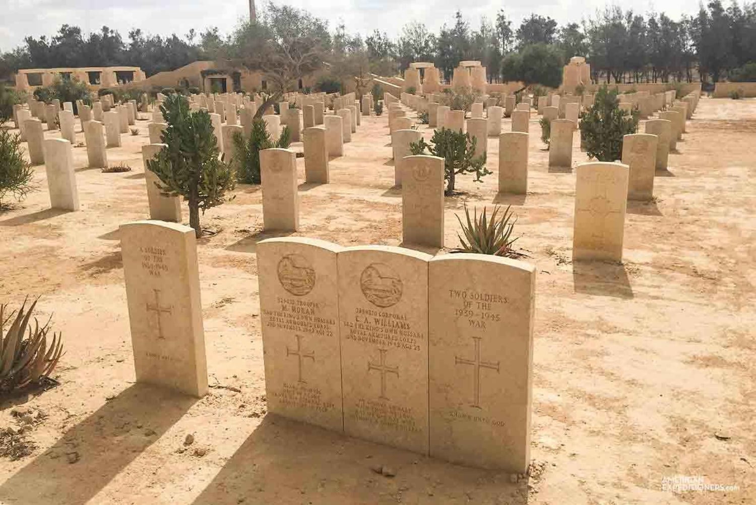Museu da Guerra de El Alamein Começa às 7h com o traslado do seu hotel no Cairo pelo nosso guia turístico especializado e, em seguida, para El-Alamein, que está localizado a cerca de 240 quilômetros a noroeste do Cairo e 106 quilômetros a oeste de Alexandria. Chegando em El-Alamein, você começará seu passeio de um dia com o Museu de Guerra de El-Alamein. Cemitério de Guerra de El Alamein Em seguida, visite o cemitério da Commonwealth que contém os túmulos de soldados de diferentes países que morreram durante a guerra. El-Alamein foi um dos pontos mais importantes da Segunda Guerra Mundial, portanto, nesta viagem você poderá saber mais sobre a Segunda Guerra Mundial e todos os eventos históricos com nosso guia turístico especializado.Includes