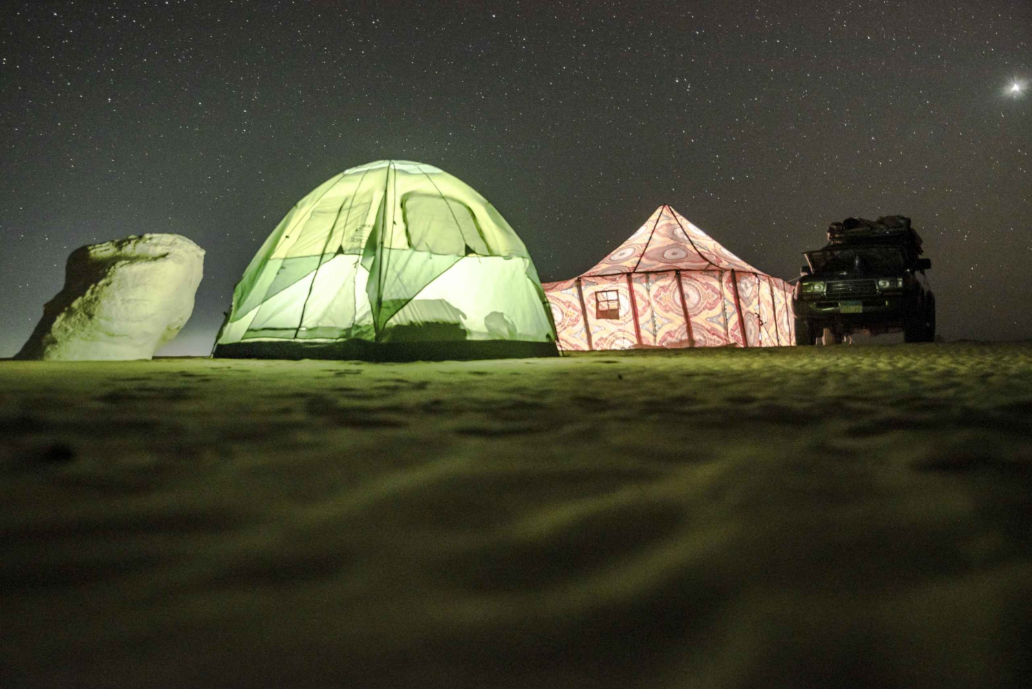 - Насладитесь ночным кемпингом и откройте для себя красоту ночной пустыни.