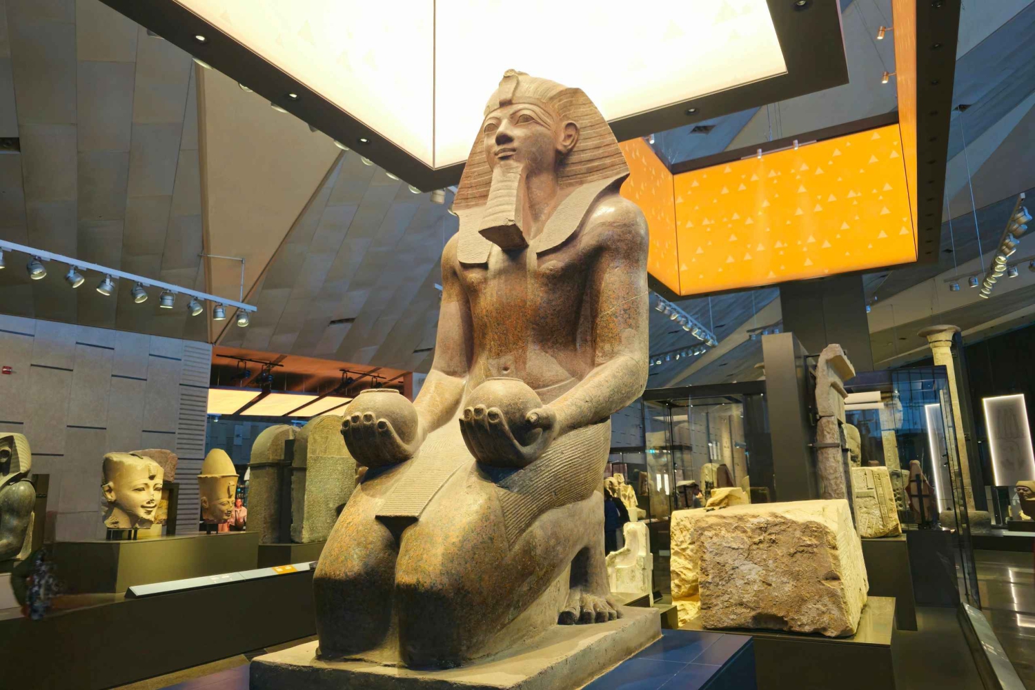 - Walk through the Grand Hall with giant statues of ancient pharaohs