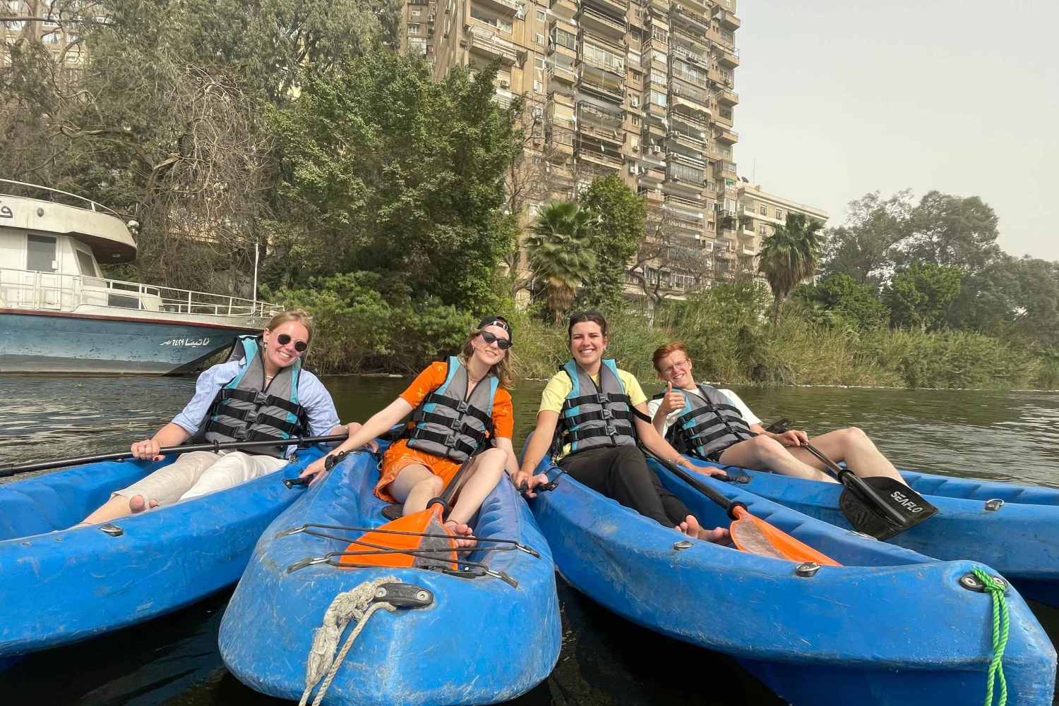 Upplev Kairo från Nilen lugna, vackra vatten med en guidad kajaktur som passar alla nivåer. Oavsett om du är nybörjare på kajakpaddling eller bara söker en lugn tillflyktsort i naturen, erbjuder denna upplevelse en perfekt blandning av avkoppling, äventyr och säkerhet. Träffa dina vänliga, professionella instruktörer som guidar dig varje steg på vägen, med en 20-minuters introduktion för att se till att du känner dig bekväm och säker. Njut av en ny vy över staden när du paddlar längs Zamaleks strand, långt bort från bullret och in i ett lugnt flöde. Kom ensam, ta med en vän eller gör det till en grupputflykt. Ingen erfarenhet behövs, bara nyfikenhet och en förkärlek för vatten.Includes